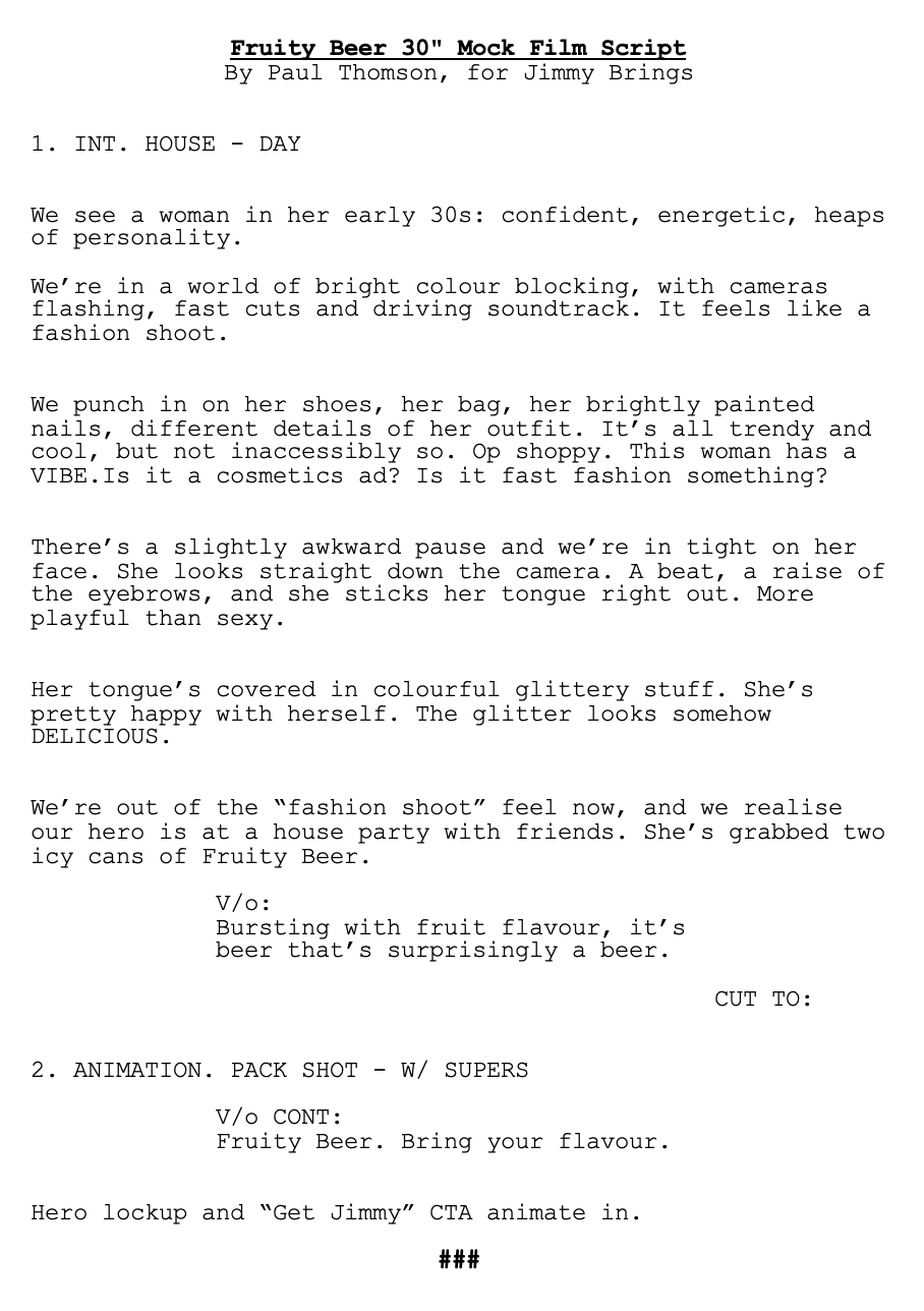 It was a world where beer was dying, seltzer was meh, and Hard Solo Hard Rated didn’t exist yet. The gig was to take an entirely new category to market and unlock the portfolio play within Endeavour Group (Dan Murphy’s, BWS, Pubs, etc) that was right for Jimmys.